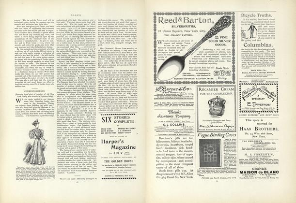 Correspondence (Extracts From Letter of Member of Old New York Family Who Married a Japanese Lady)